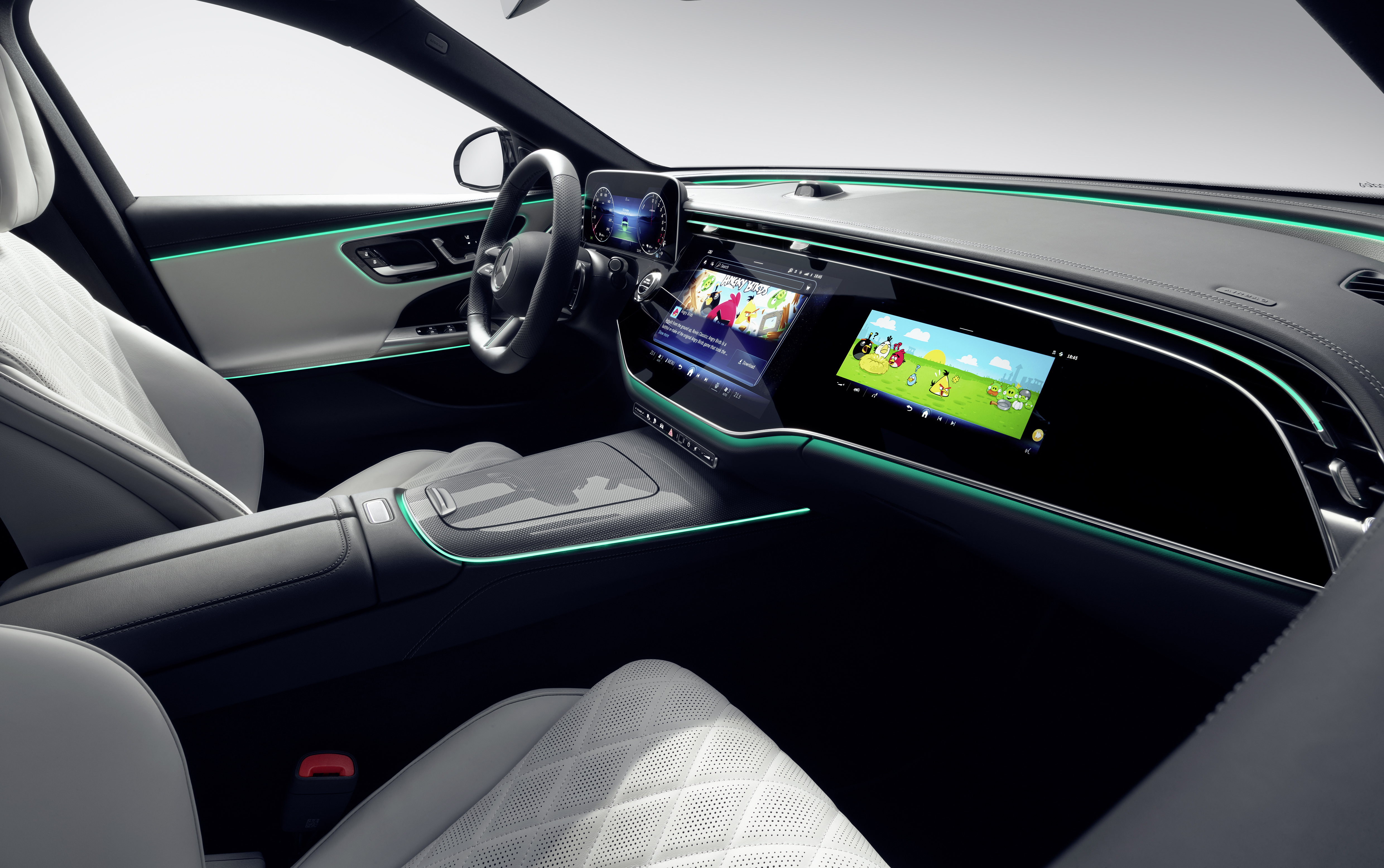 O programa de entretenimento do Classe E estará ainda mais interativo. Os especialistas em software da marca desenvolveram uma nova camada de compatibilidade que permite a instalação de aplicativos como "TikTok", "Angry Birds", "Webex", "Zoom" e "Vivaldi " na tela central do novo Classe E. Outra novidade é que quando o veículo estiver parado, o motorista poderá participar de videoconferências on-line, por exemplo via Webex, e tirar fotos e vídeos pessoais ao mesmo tempo.