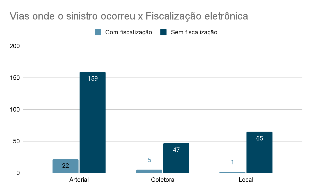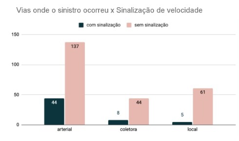 - 90% dos sinistros ocorreram onde não há fiscalização eletrônica e 81% onde não há sinalização de limite de velocidade.