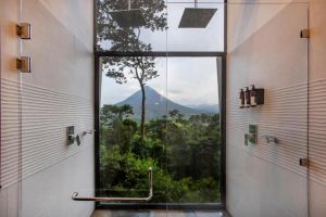Com vista privilegiada para o vulcão, o Sangregado Lodge oferece suítes que valorizam a integração com a natureza. Os banheiros contam com banheiras posicionadas de frente para a paisagem, permitindo momentos de relaxamento enquanto se observa a floresta tropical ao redor.